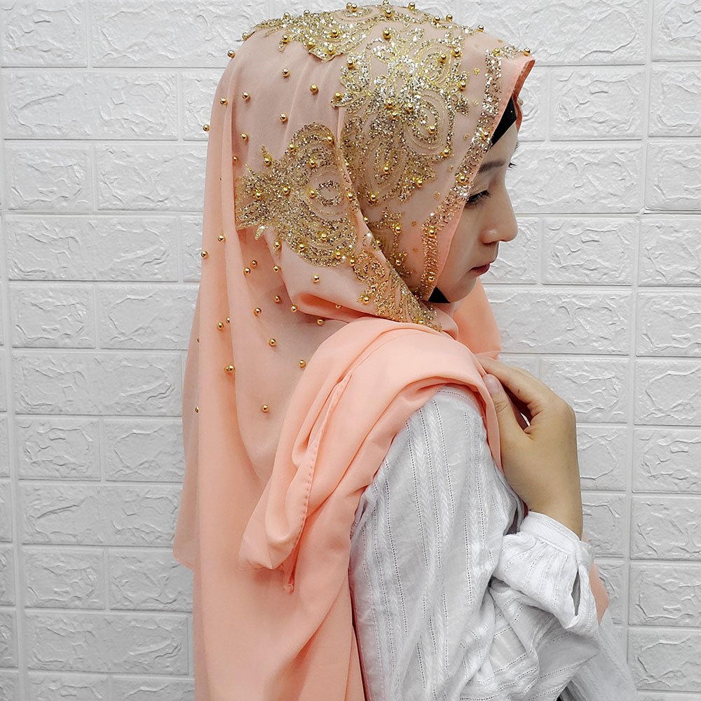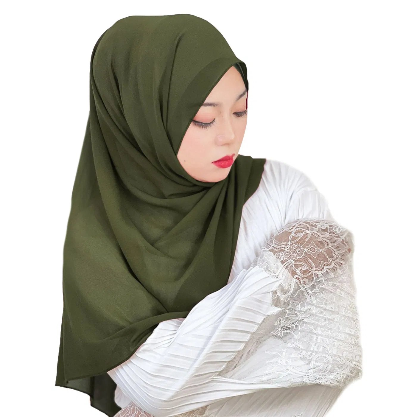 New Coming Lady Button Dupatta Shawl Scarf Turban Easy to Wear Plain Solid Polyester Muslim Chiffon Instant Hijab