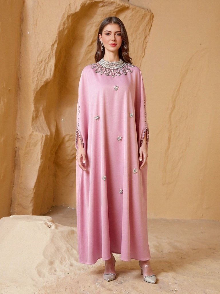 Shiny Maxi Dress Kaftan Batwing Abaya Eid Ramadan Women Muslim Dress Dubai Wholesale Islamic Clothing New