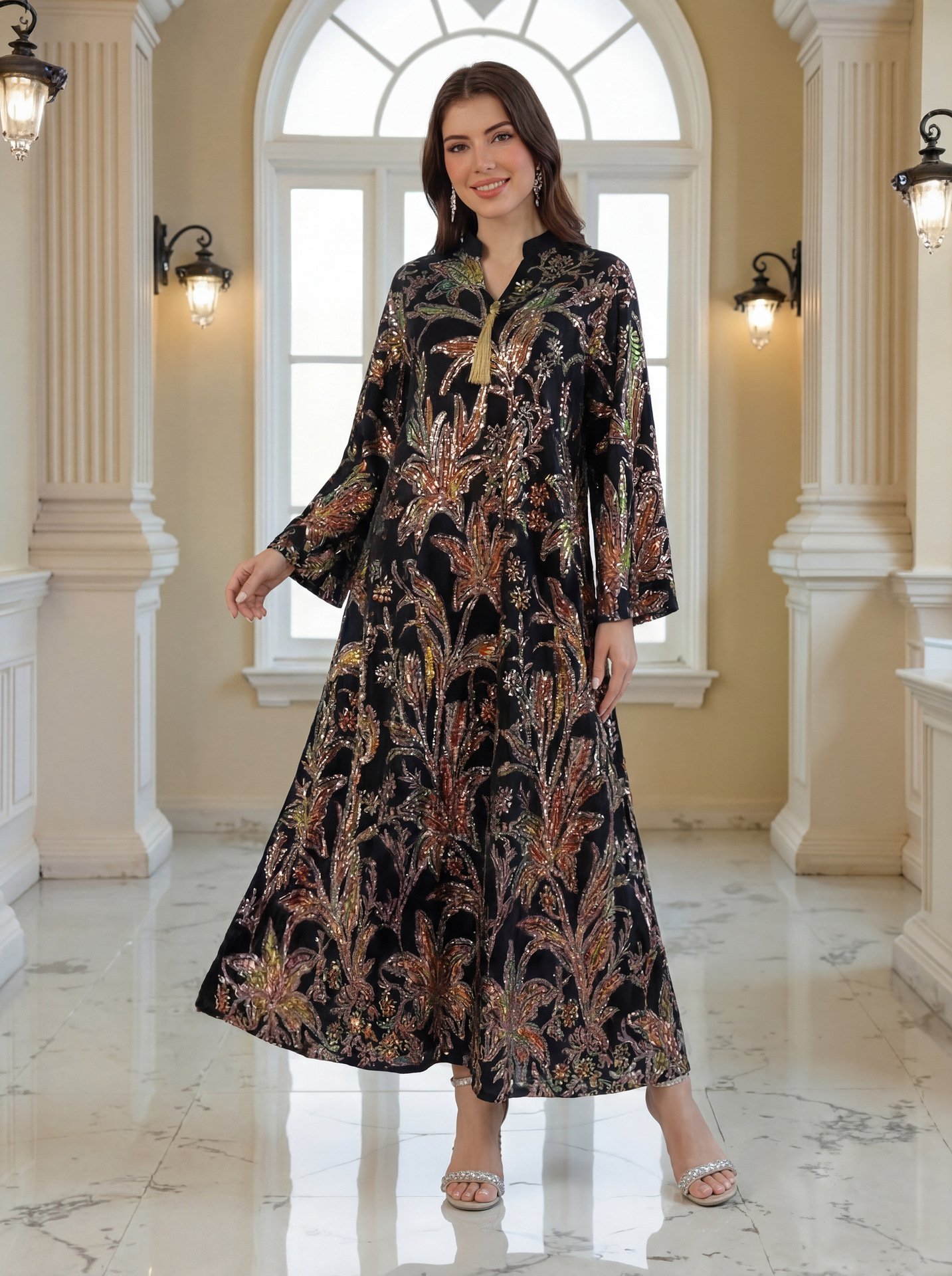 Shiny Maxi Dress Kaftan Batwing Abaya Eid Ramadan Women Muslim Dress Dubai Wholesale Islamic Clothing New
