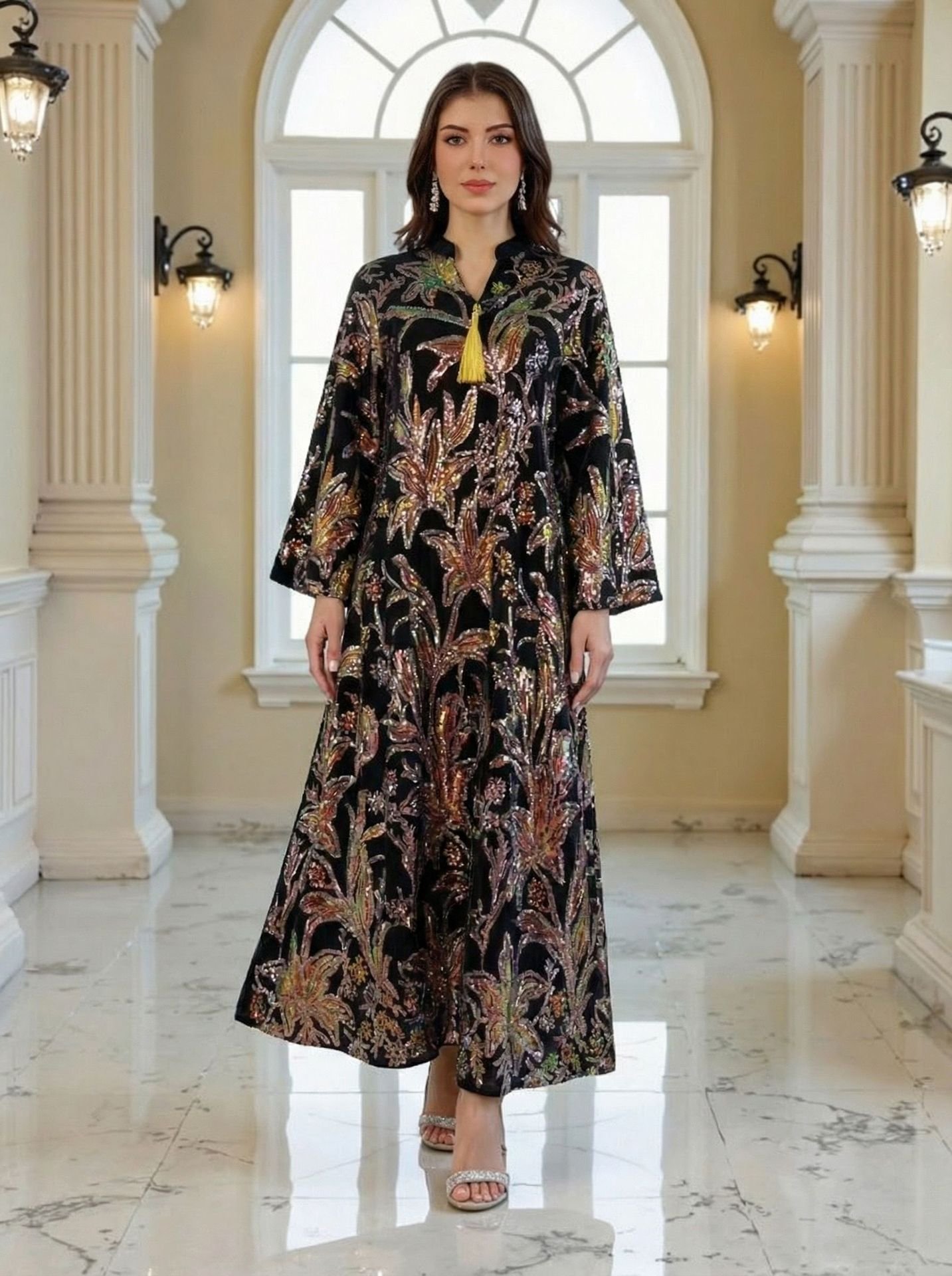 Shiny Maxi Dress Kaftan Batwing Abaya Eid Ramadan Women Muslim Dress Dubai Wholesale Islamic Clothing New