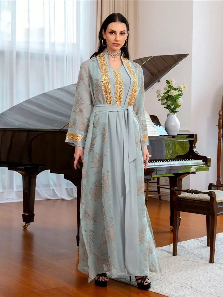 Islamic-Clothing for Men Muslim Abaya Thobe-Luxury-Karftan Casual Long-Sleeve Robes-Prayer Arabic Abaya Dress